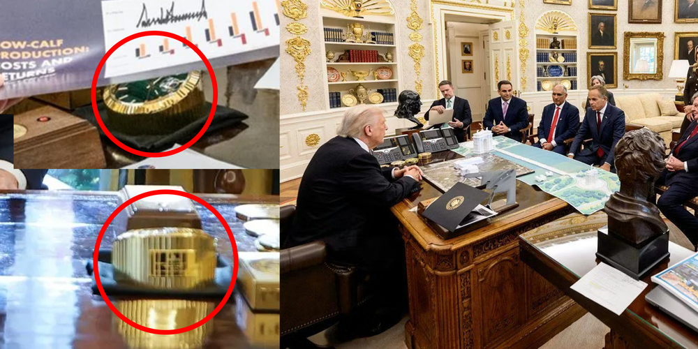 The clock appeared in official Oval Office photographs shortly after the meeting. Amid a week filled with tariff news and trade uncertainty, the appearance of a Rolex-style desk clock in the middle of those images stood out immediately to people who follow watches closely.
