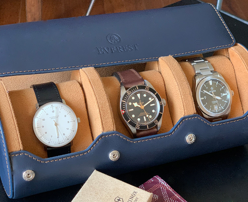 There’s a watch for every taste and budget, and the great thing about them is that they all fit into Everest watch accessories. The roll - cork is my favorite material - holds between three watches. The newly released portfolio which holds extra straps and tools, carries three watches. Finally, all variants of the watch pouch are a great way to travel with or protect your style and investment when they’re not on the wrist. You can shop all of these accessories here.