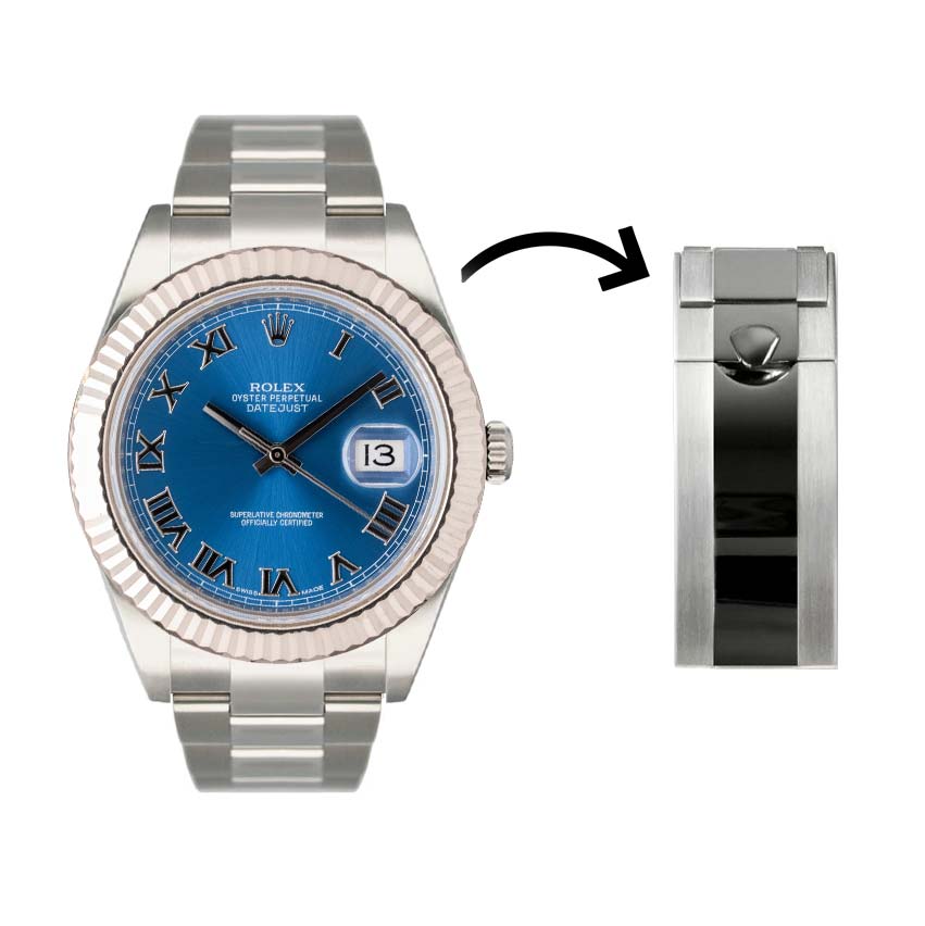 The Everest Clasp is compatible with most six-digit Rolex Oyster bracelets, excluding current-generation Submariner references beginning with 12-. Model-specific compatibility is listed on each product page.