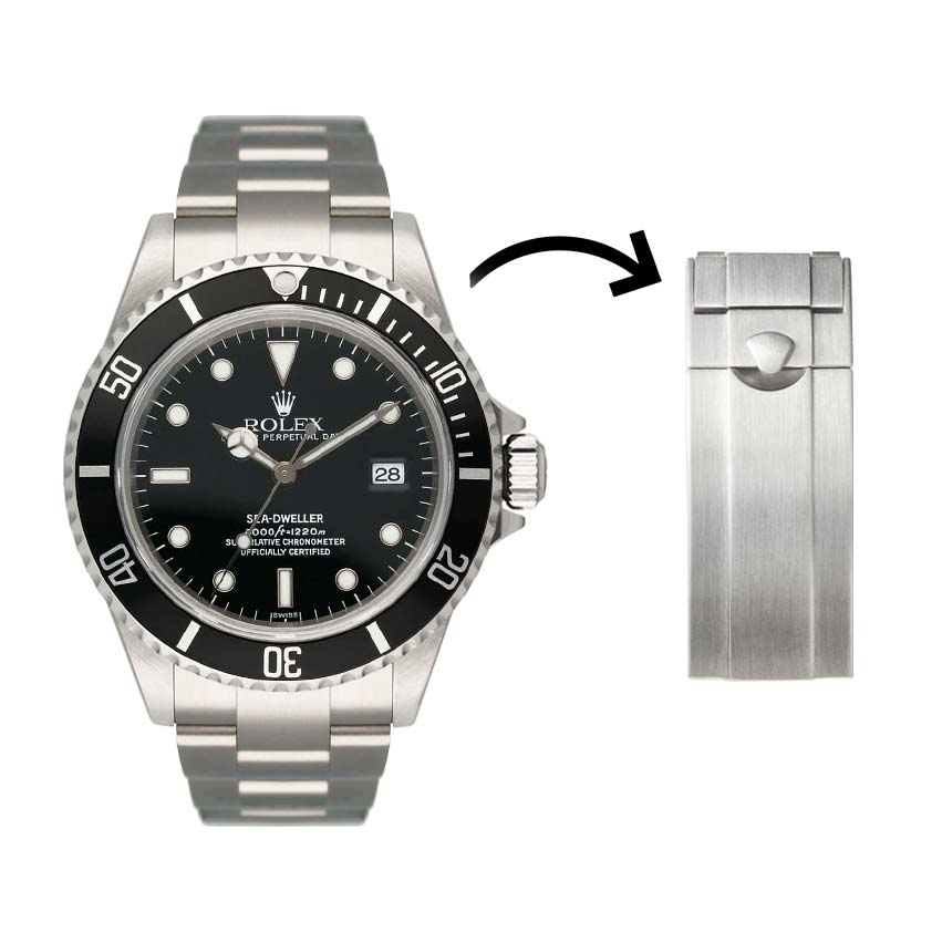 The Everest Buckle is a luxury aftermarket replacement clasp for Rolex Sea-Dweller 16600 & 16660 Oyster bracelets, precision-engineered in 316L stainless steel. It delivers OEM-level fit and comfort and is compatible with Everest deployant straps designed for this reference.