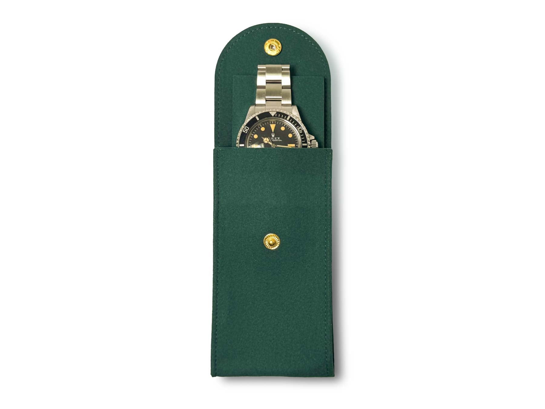 This microfiber watch pouch is designed to store and protect your watch. It is made out of a very soft Everest exclusive Swiss microfiber material that keeps your watch safe and scratch-free. The snap on the outside of the pouch keeps your watch secured and is covered on the inside to prevent scratching. Included inside is an insert that ensures safety against jostling and scratches. The pouch is best suited for watches with bracelets.